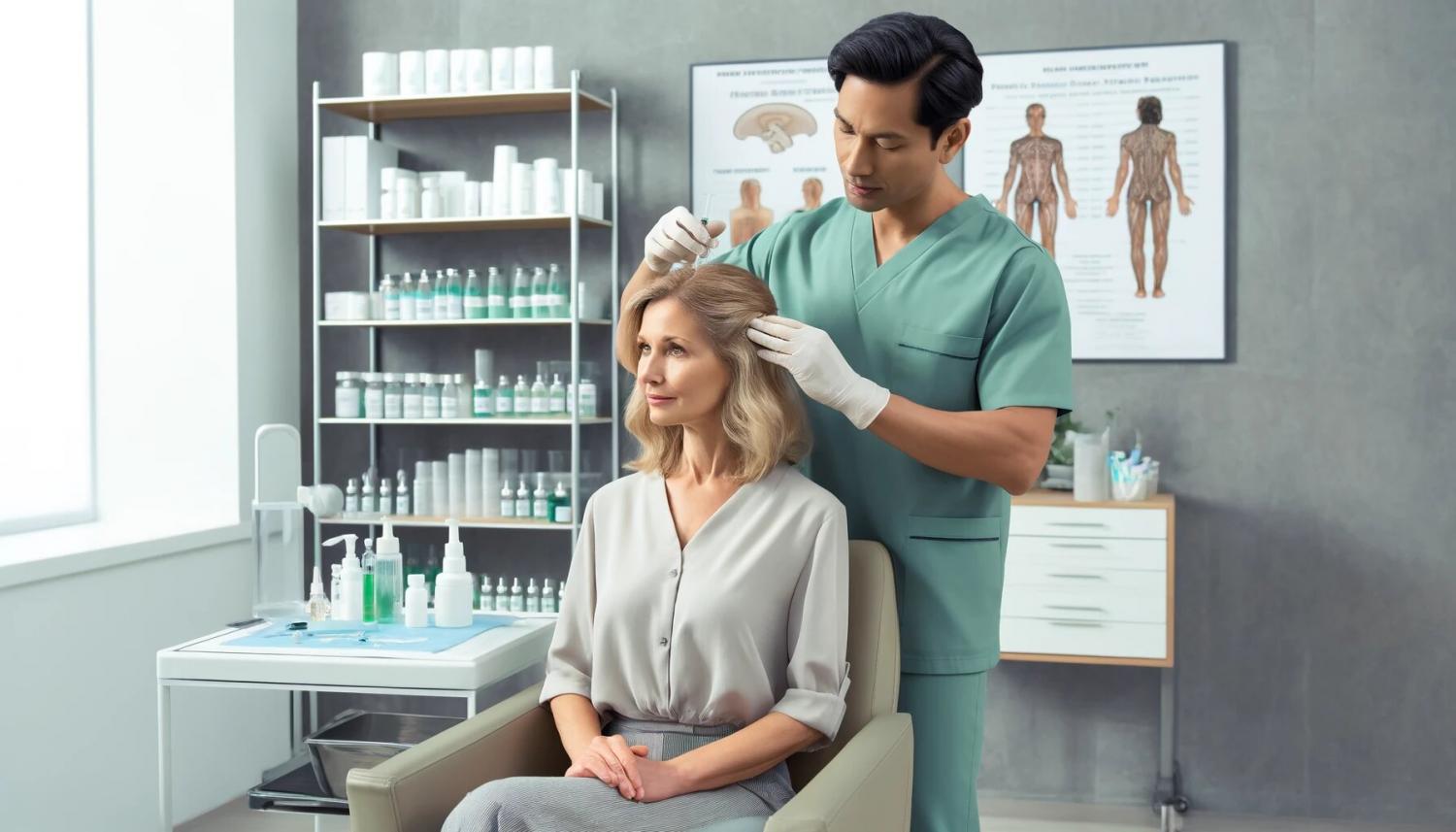 Введение препарата с помощью инъекционных игл небольшой толщины в слои кожи на голове.